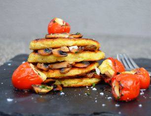 Murgpampoentjie plaatkoekies met sampioene en gevulde tamaties